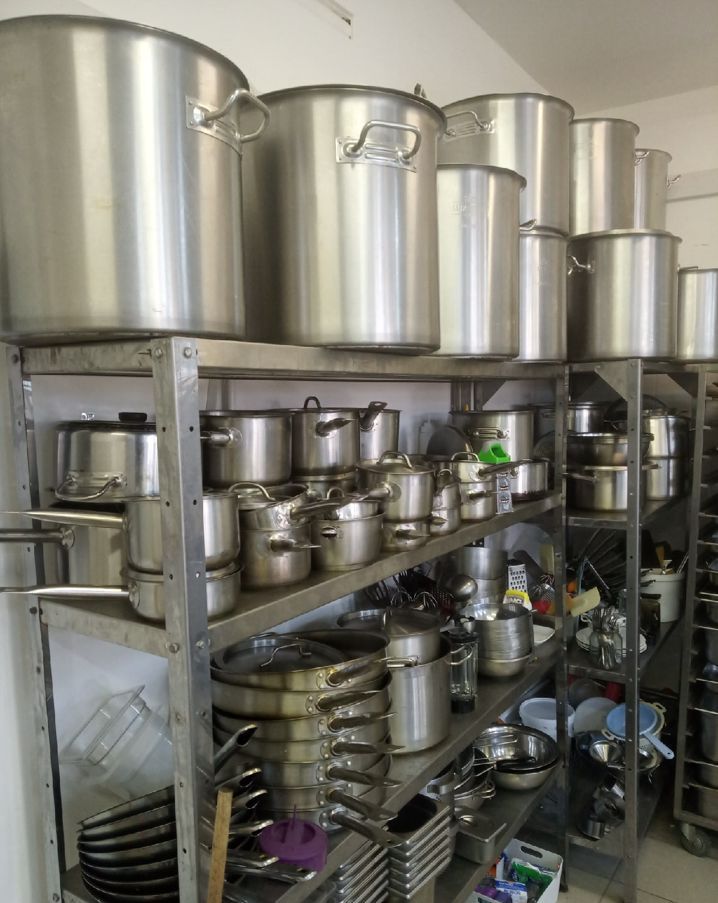 - Кухонный инвентарь: ножи, половники, гастроемкости, кастрюли с тройным дном для индукционных плит(от 5 до 50 литров), сотейники (от 1 до 10 литров)